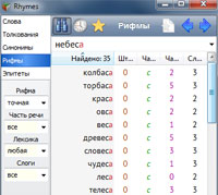 Большой словарь рифм. Это бесплатная программа, которая позволит вам легко подобрать рифму, синоним или эпитет, узнать толкование и произношение слова, посмотреть примеры его употребления.