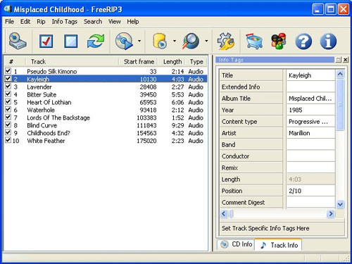 Предлагаю вашему вниманию риппер треков с AudioCD на жесткий диск. "FreeRIP" позволяет писать файлы в WAV, Ogg Vorbis и MP3 форматы. Также есть возможность конвертации музыкальных файлов из одного формата в другой. Есть поддержка ID3 тегов, импорт информации из интернет-базы FreeDB, имеется встроенный поисковик музыки в интернет. Очень полезная программа и абсолютно доступная для пользователей любого уровня подготовки.