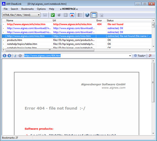 Со временем в закладках Internet Explorer или Opera скапливается огромное количество ссылок. Какими-то из них вы пользуетесь постоянно, другие же забыты вами сразу же после занесения в закладки. Некоторые уже давно не работают, но продолжают занимать свое "почетное" место. А проверять их все постоянно нет совершенно никакой возможности. За вас это вполне может сделать "AM-DeadLink". Программа поддерживает закладки Internet Explorer, Opera, Mozilla и Chrome. Так же есть возможность проверки ссылок в HTML-файле. Резервное копирование закладок - создается zip-архив. Интерфейс программы включает в ебя большое количество языков, в том числе и русский.
