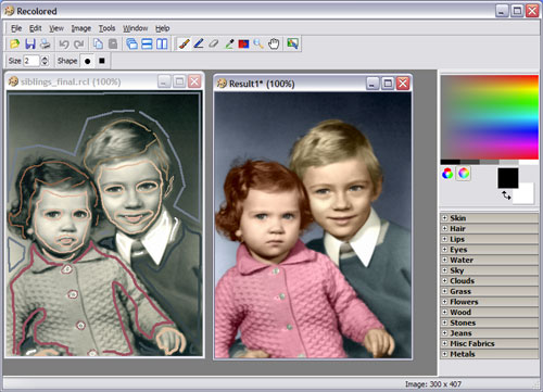 Никак не смог обойти вниманием эту программу, хотя она уже давно перестала быть бесплатной. Более простого и быстрого способа превращения черно-белой фотографии в цветную я еще не встречал. Если у вас скопилось много старых фотографий, которые вы бы хотели превратитть в цветные - "Recolored" именно то, что вам нужно. Вам необходимо лишь желание и десять-пятнадцать минут времени. Программа очень проста в использовании. Вы должны лишь примерно обозначить цвета, используя уже готовые библиотеки для подбора цвета волос, кожи, глаз и т.п. - остальное предоставте "Recolored". Версия, предлогаемая для скачивания, полностью функциональна. Правда, через 21 день она перестанет таковой быть и предложит себя купить за 25 Евро. Но это же только через 21 день. За это время вы сможете по достоинству оценить все ее достоинства и решить покупать или нет.