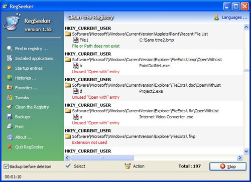 Программа для работы с реестром операционной системы. Умеет делать очень много полезного. Например, почистит ваш компьютер от всевозможного мусора. Кроме того в "RegSeeker" есть менеджер установленных приложений и менеджер автозагрузки. С помощью RegSeeker можно сделать резервную копию реестра и осуществлять его экспортирование и импортирование. Работать с "RegSeeker" на много приятнее, чем со стандартным менеджером задач. И, что не менее приятно, если вы натворили что-то не то, всегда есть возможность вернуть сделанные изменения.
