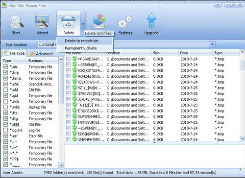 "Wise Disk Cleaner" — утилита для быстрого и легкого освобождения свободного места на жестком диске. Она удаляет ненужные мусорные файлы, которые не используются программами, установленными в вашей системе. Программа может определять более 50 типов мусорных файлов, и вы можете сами добавлять любые типы файлов, которые считаете мусором. После того, как "Wise Disk Cleaner" просканирует систему на наличие мусорных файлов, можно индивидуально посмотреть каждый файл и подробную информацию о нем, после чего решить, стоит ли его удалять. Имеется также возможность удалять все ненужные файлы в автоматическом режиме.
