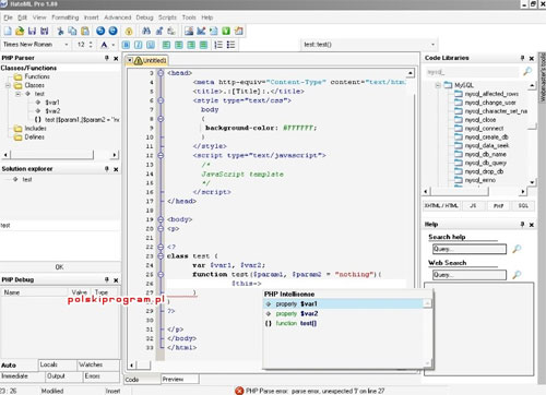 Очень удобный редактор для веб-программиста с подсветкой кода, поддерживающий HTML, CSS, JavaScript, PHP, VB Script, XML и даже SQL. Программа предлагает сделать работу с исходным кодом страницы или скрипта удобной и для этого предлагает целый арсенал разнообразных средств. Есть «Инспектор тегов», позволяющий легко менять и настраивать атрибуты тегов. Отлично реализована работа со стилями, позволяющая как создавать отдельные файлы с CSS, так и встраивать стили в страницу. В программу включено несколько вариантов внешнего вида, можно также лично подстраивать программу под свои нужды. Кроме того, есть ряд полезных мелочей: управление цветами, специальные символы, удаление избыточных знаков.