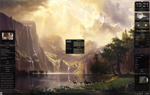 Набор виджетов в стиле Windows 7, который можно редактировать по своему усмотрению. Программа отображает на рабочем столе текущую дату и время, график загрузки центрального процессора, количество свободной и занятой памяти компьютера, погоду, сетевую информацию (IP-адрес, DNS-адрес, трафик, скорость использования канала). Также есть возможность загружать новостные ленты, проверять почтовые ящики, управлять медиаплеером и многое другое.