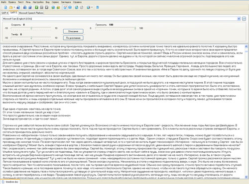 Программа "Балаболка" предназначена для чтения вслух текстовых файлов. Для воспроизведения звуков человеческого голоса могут использоваться любые речевые синтезаторы, установленные на компьютере. Программа умеет читать вслух содержимое буфера обмена, показывать текст, содержащийся в файлах форматов AZW, AZW3, CHM, DjVu, DOC, EPUB, FB2, HTML, LIT, MOBI, ODT, PDF, PRC и RTF, изменять настройки шрифта и цвета, управлять процессом чтения из системного трея или при помощи глобальных сочетаний клавиш, произносить набираемый на клавиатуре текст, проверять орфографию, делить текстовый файл на несколько файлов меньшего размера, искать омографы. "Балаболка" предоставляет возможность удалить из текста все знаки переноса на концах строк; это позволит избежать запинок при чтении слов.