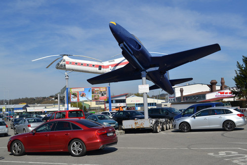 Под потолком над этим великолепием висят различные летательные аппараты. От планеров до вертолетов. Вообще, должен заметить, что пространство павильонов обустроено в высшей степени грамотно. Подчеркиваю, не площадь, а именно пространство. Каждый полезный кусочек его использован по назначению.