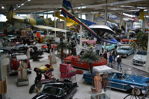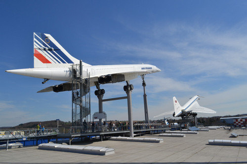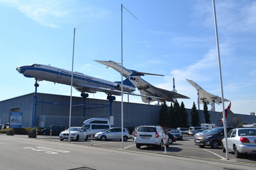 На этом с первым павильоном было покончено и мы перешли во второй. Там собраны болиды Формула-1, локомотивы, коллекция автомобилей "Мерседес" и "Майбах", гоночные автомобили, мотоциклы и олдмобили. Кроме того, через второй павильон можно подняться на крышу павильона к самолетам, возвышающимся над ним. В частности, к сверхзвуковым пассажирским самолетам "ТУ-144" и "Конкорд".