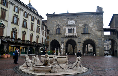 Именно на этой старой площади собраны самые главные достопримечательности Бергамо. Первое, что нам попалось на глаза - обе ратуши: старая (Palazzo della Ragione)