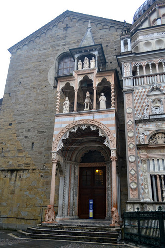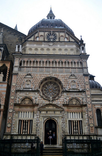 Пройдя под арками старой ратуши, вы стразу попадаете на маленькую Соборную площадь (Piazza Duomo), где лицом к лицу упираетесь в великолепное сооружение - Капеллу Коллеони (Cappella Colleoni), построенную в XV веке архитектором Джовани Антонио Амадео.