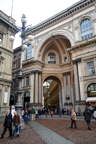 Тут же за памятником расположен вход в Галерею Виторио Эммануэле II (Galleria Vittorio Emanuele II) - один из первых торговых пассажей Европы.