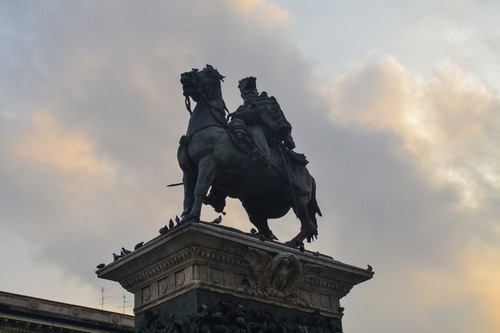 Напротив собора стоит конная статуя Виторио Эммануэле II (Vittorio Emanuele II). Того самого, чье имя и носит галерея. В Италии, на самом деле, многое связано с именем этого человека. И не мудрено.