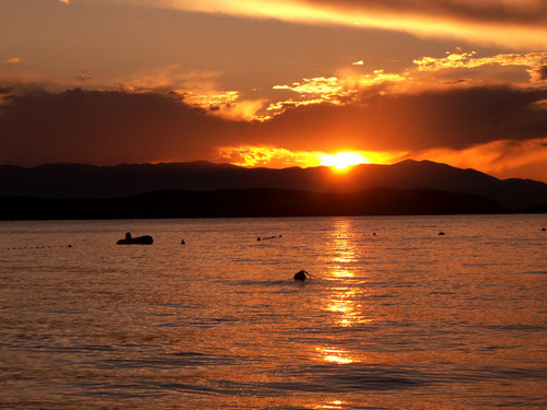 Скажу честно, что платный пляж очень сильно поколебал мое мнение о том, что ноги моей в Хорватии больше не будет. Везде, практически, песочек. В воде у самого берега узкая, метра полтора, полоска камней, а за ней, опять-таки, песочек. Супер! Так можно и отдыхать. И лица вокруг не топором вырубленные. Хотя это-то как раз и не удивительно, так как везде сплошь русская и немецкая речь. Боже, после хорватских женщин я с благоговением смотрю на немок. Кто бы мог подумать!