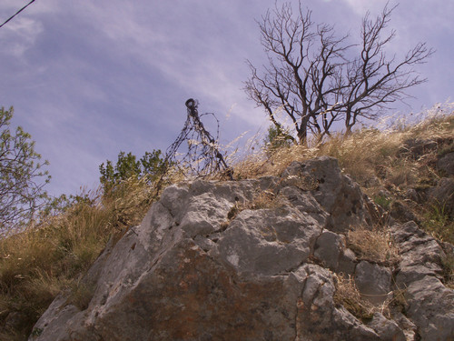 После Крка решили посетить еще один прибрежный городок, Башку, название которого было на слуху. По дороге увидели высокий монумент в форме перевернутой вилки в живописном месте и решили остановиться. Когда подошли поближе, все оказалось еще лучше, чем виделось с дороги. Потрясающий вид. Горы, долина внизу, море вдалеке между вершинами... Фотографировались, пока не замерзли. Температура была градусов на десять ниже, чем на побережье.