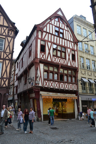 Раньше весь центр города состоял практически из них одних, но несколько крупных пожаров изменили лицо города. Да еще и во время Второй Мировой войны досталось Руану не слабо. Но и сегодня практически весь центр города фахверковый. Дома эти создают в Руане определенный колорит. По этим старым зданиям видно, насколько люди здесь были близки к природе. Ведь, как и в природе, прямых углов там практически нет.