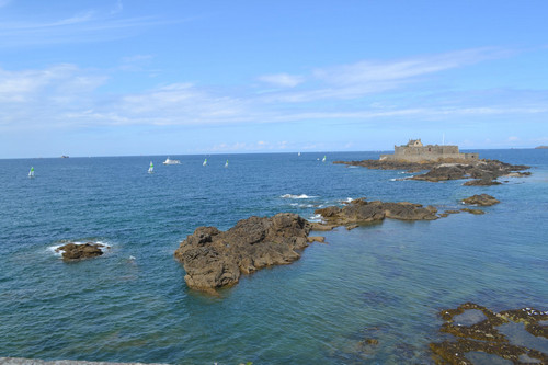 Со стены открываются шикарные виды на море и на многочисленные острова, разбросанные около Сен Мало то тут, то там. Если присмотреться, то на каждом из них, даже самом маленьком, можно разглядеть какое-нибудь строение. Очевидно, оборона города, в свое время, одним Национальным фортом явно не ограничивалась.