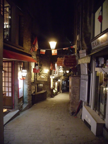 Когда мы вышли из аббатства время перевалило уже за полночь. Мы и не заметили, как пролетело больше трех часов. Шаттлы до парковки ходили до двух часов ночи, так что мы не спешили, спускаясь по вымершим улочкам Мон-Сен-Мишель. Все магазины и кабачки уже закрыты. На улицах ни души.