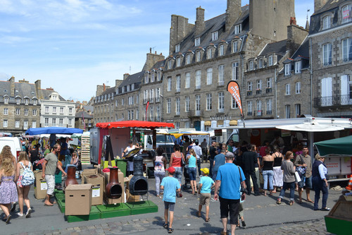 Пробираясь к замку по узким улочкам Динана, мы неожиданно для себя выскочили на большую площадь, на которой развернулся городской рынок. Не могли себе отказать в удовольствии немного по нему погулять.