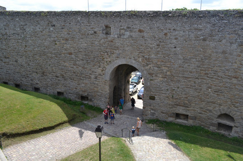 Зная, что время у нас ограничено, мы не стали обходить по стенам весь город, а, пройдя лишь небольшую его часть поверху, спустились вниз и направились по его узким улочкам к центральной достопримечательности Динана - замку. Мы видели его, когда объезжали город на машине - впечатляющее сооружение.