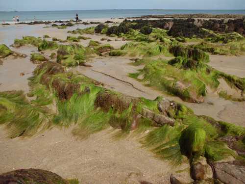 Вода в море оказалась неимоверно чистой. Был отлив и наружу вышли поля красивых зеленых водорослей, которые иначе и не увидишь,