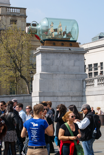 Четвертый же постамент особенный. На нем тоже всегда установлена статуя. Причем, всегда разная. Все дело в том, что место это выборное. В прямом смысле. Среди статуй - претендентов проводится конкурс, победитель которого и занимает место у галереи. Так восемь лет назад на постаменте стоял большой корабль, заключенный в бутылку, в обычное время обитающий в Гринвиче.