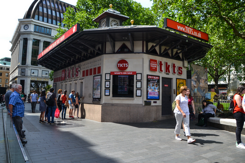 Чем еще примечательна Лестер-сквер - так это тем, что на ней находятся Театральные билетные кассы. В них рано утром можно попытаться купить "горящие" билеты на представления. Зачастую разница в цене с обычными билетами весьма ощутима. Видимо поэтому огромная очередь здесь выстраивается задолго до открытия касс.