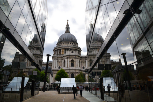 Собор стоит на самом высоком холме Лондона, и виден почти отовсюду, если только вам не закрывают его небоскребы. Площадь около храма - еще одно место, где хочется фотографировать постоянно. Делаешь буквально несколько шагов и руки сами собой тянутся к камере, так как "из этого ракурса снимок получится еще лучше, чем предыдущие два десятка".