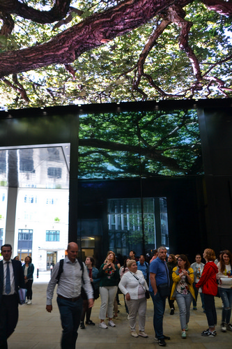 Еще одна смотровая площадка - The Garden at 120. Тоже совершенно бесплатно и даже без предварительной записи. Пройдя небольшой досмотр, как в аэропорту, вы можете подняться на лифте на 15-й этаж и любоваться видами Лондона. Но маленькая ложка дегтя есть и здесь. The Garden at 120 находится в офисном здании и в выходные дни, когда офисы закрыты, вам туда не попасть. Вот мы и не попали. Смогли только насладиться необыкновенным живым панно на потолке в холле здания. Потолок этот превращен в огромный экран, на котором постоянно демонстрируются картины живой природы. Потрясающее зрелище! Даже если вы не захотите подниматься в The Garden at 120, зайдите в здание, чтобы полюбоваться этими картинами.